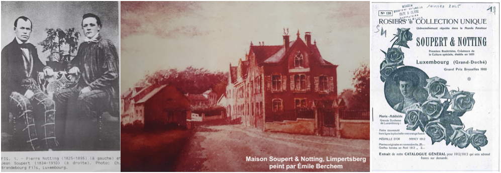 Deux adolescents, Jean Soupert de Dommeldange et Pierre Notting de Bollendorf ont appris le métier d'horticulteur-rosiériste auprès d'Augustin Wilhelm. Travailleurs et commerçants habiles, ils relevèrent le défi de créer en 1855, dans un pays à l'agriculture sous-dévelopée, la première entreprise luxembourgeoise qui créa et exporta des roses.
